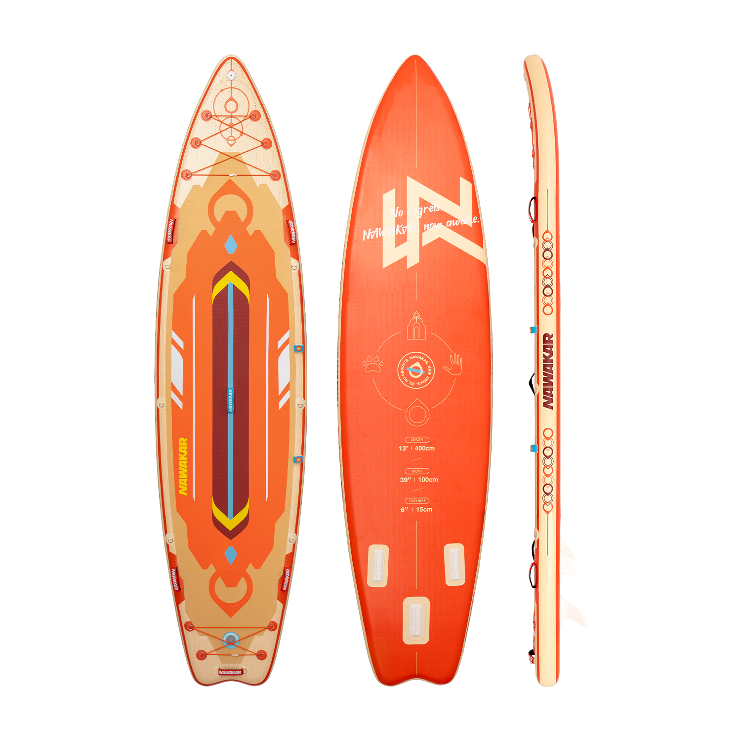 The Family Paddle Board is designed for families who love to enjoy time on the water together. Measuring 400x100x15cm (13'x39"x5") and weighing 12.13kg (26.74lb), this board offers a large and stable platform that ensures maximum comfort and security for all family members. With its extended EVA foam coverage, it provides additional stability, making it ideal for both beginners and experienced paddlers, as well as for families who want to bring their pets along.